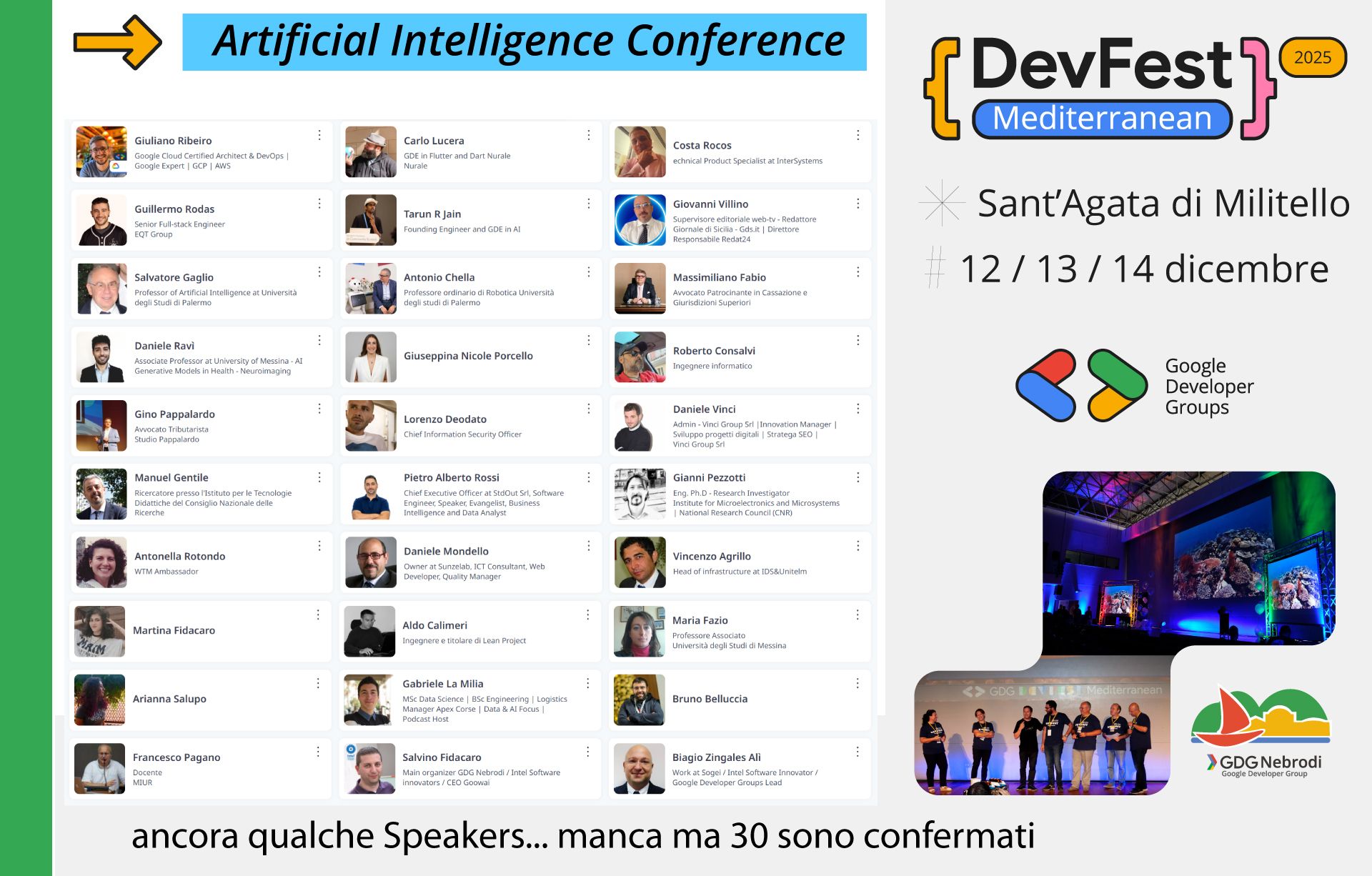 Sant’Agata di Militello diventa il centro del Mediterraneo per l’innovazione tecnologica: torna la GDG DevFest Mediterranean, con 7 conferenze, tre palchi e una lineup di speaker che racconta perfettamente la direzione che sta prendendo l’AI nel mondo reale.