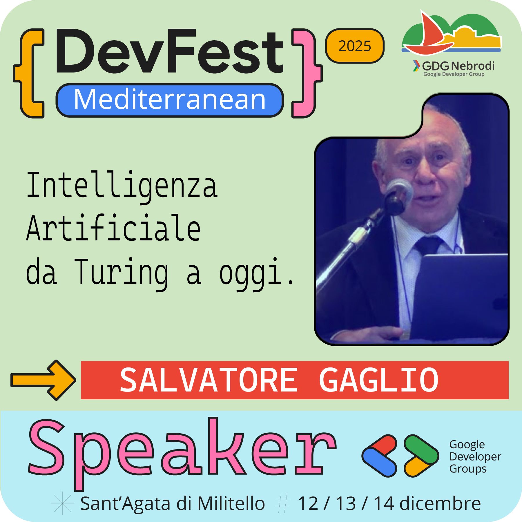 Salvatore Gaglio sarà tra gli speaker della GDG DevFest Mediterranean 2025 con un talk che attraversa la storia dell’innovazione: “Intelligenza Artificiale: da Turing a oggi”.