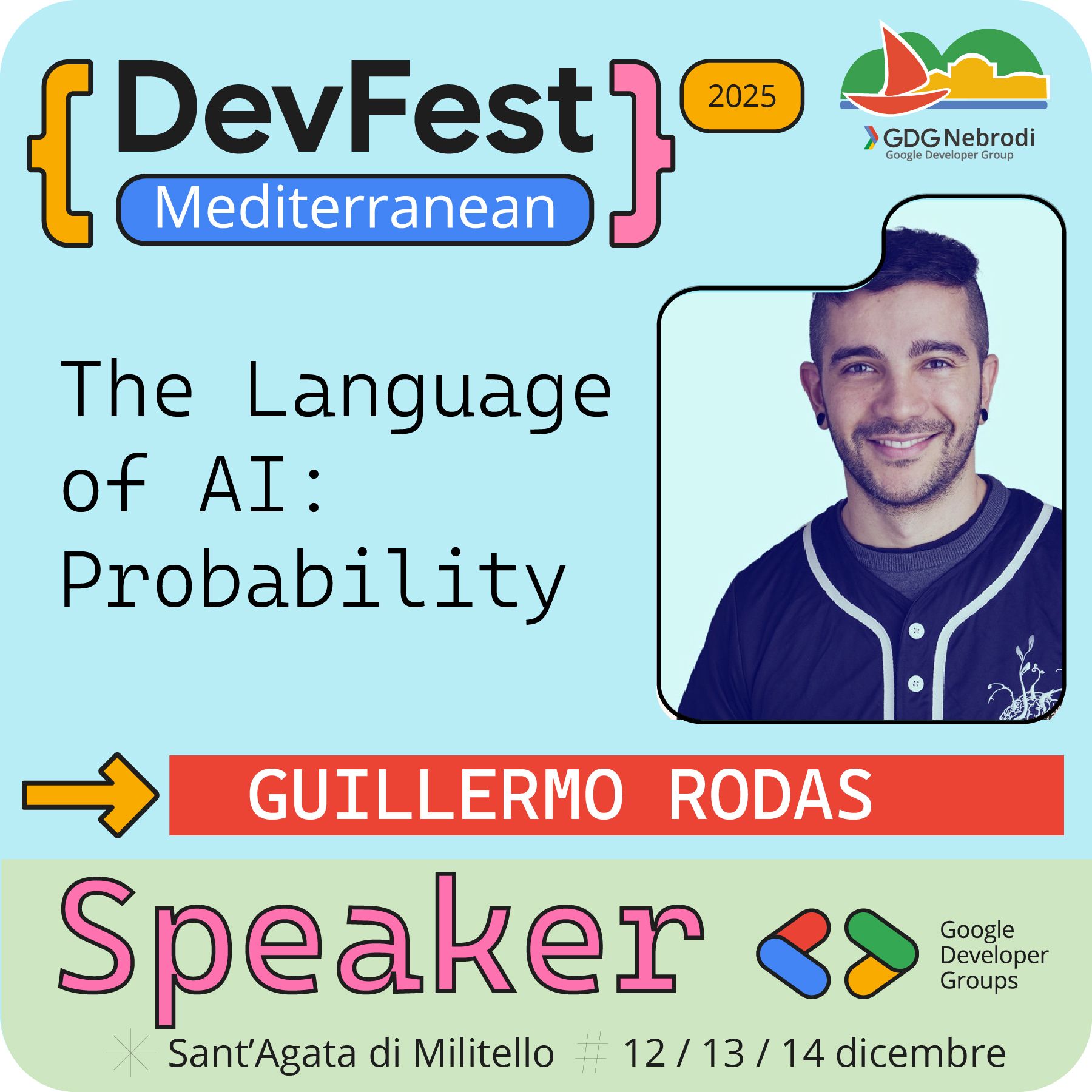 Guillermo Rodas sarà uno dei protagonisti della GDG DevFest Mediterranean 2025 con il talk “The Language of AI: Probability”.